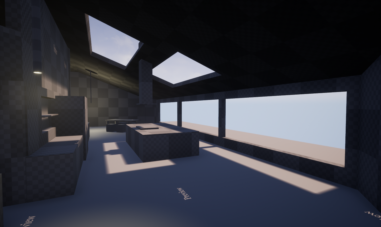 As I decided that I was going to go forward with this one, I added more detail to the block out, so put more furniture in place and experimented a bit more with windows and half walls. I have also started making an asset list which I will add to as I go along, I split it into the different rooms/areas of the house. With the asset list, it will help me to stay focused on the project and to help me see exactly what needs to be done and what assets should take priority in being done first.